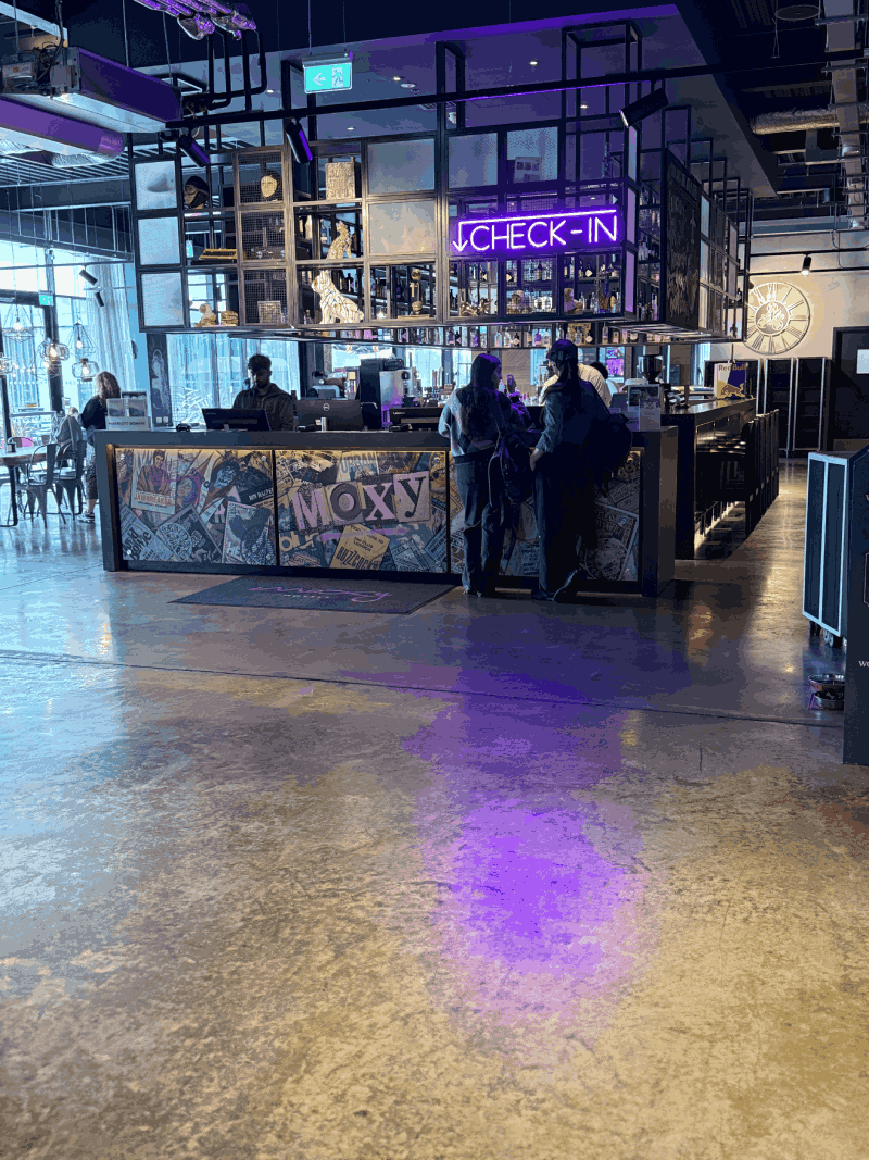 The Moxy Bar offers drinks, snacks and light bites 24/7. Breakfast is available as a buffet. Several local restaurants and takeaways are within walking distance and shown in our local restaurant guide for the Moxy here. Vending machines and grab-and-go options are available in the lobby.